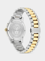 This collection features a sleek dial enriched with sunray dial and a 3d Medusa at 12h. The case is enriched with a GMT movement window at 6h and window date with magnificent glass at 3h.
