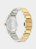 Timeless, elegant, but still iconic. This is the new V-Royal. A case that embrases a guillochè dial with the date window at 3h. Several are the symbols that recall the Versace Brand DNA, as the tone-sur-tone Greca in the inner ring, the Medusa Head and Versace logo at 12, and the Greca Details engraved along the bracelet.