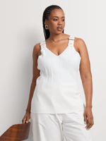 Our Lurex Buckle Detail Vest is a luxe look for the season. Pair it with smart pants, dark denim or a satin maxi skirt. Add statement earrings and a bold handbag.