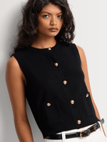 Knitted tops are a style staple this season. Wear our Crew Neck Button Through Knit Vest with smart wide-leg trousers and block heels to the office, or with a pleated maxi skirt and flats on the weekend.