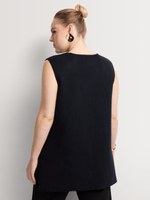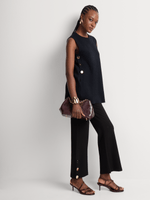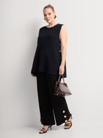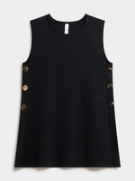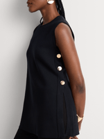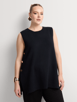 Knit tops bring an effortless elegance to your daily style. Wear our Crew Neck Longline Button Detail Knit Vest with tailored trousers, midi skirts, jeans or shorts. The button detail and longer length elevate the look.