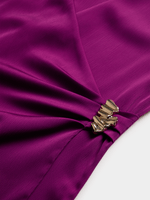 Elegant with elevated details, the Luella Satin Draped V-Neck Hardware Detail Vest made from fluid satin features a beautiful drape, accentuated by gold hardware detail. Pair it with the matching Luella Satin Pleated Waistband Wide Leg Pants for a striking coordinated set, perfect for an occasion or special event.