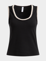 Craft-inspired details bring a fresh update to summer staples like this Scoop Neck Crochet Trim Rib Vest. Wear it with printed wide-leg pants, maxi skirts and your favourite denim.