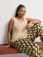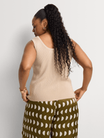 Knitted tops are a style staple this season. Wear our Scoop Neck Rib Knit Vest with smart wide-leg trousers and block heels to the office, or with a pleated maxi skirt and flats on the weekend.