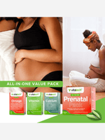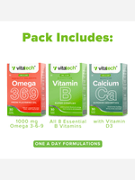 A daily trio to support mom and baby, with Omega 369, Calcium and Vitamin B for healthy development, strong bones, and all-day energy.