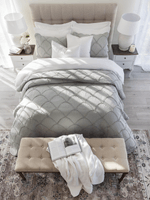 The Ariel Seafoam Quilt Set is crafted from 100% cotton and embellished with subtle detailing. Its calming scallop design in a seafoam shade adds a refreshing, coastal-inspired feel to your bedroom.