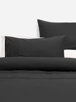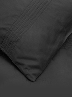 The Black Astoria Egyptian cotton, 300 thread count with fine pin tuck detail This fabric blend ensures durability while maintaining a soft touch, making it an excellent choice for everyday use.