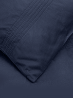 The Midnight Blue Egyptian cotton, 300 thread count with fine pin tuck detail This fabric blend ensures durability while maintaining a soft touch, making it an excellent choice for everyday use.