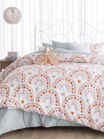 Sweet and subtle, the Becca Peach Duvet Cover Set adds a soft splash of colour to your child’s space. Made from 144TC polycotton, it offers lasting comfort, breathability, and easy maintenance. Its light base and rainbow design offers the perfect blend of playful charm and everyday practicality.