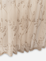 This curtain features an embroidered leaf pattern with embellishments and is ideal for letting natural light into your room. The unlined curtain is available in taped and eyelet styles, so you can choose the ideal option for your home. This fabric blend ensures durability while maintaining a soft touch, making it an excellent choice for everyday use.