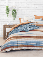 The Chase Duvet Cover Set features a striking abstract stripe design in shades of blue, nude, and toffee, offering a modern and masculine aesthetic. Crafted from 200 thread count cotton with a breathable feeling that is both exceptionally comfortable and durable. This fabric blend ensures durability while maintaining a soft touch, making it an excellent choice for everyday use.