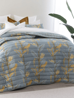 Vibrant and versatile, the Finn Teal Comforter Set is made from soft, durable microfibre and features a striking botanical motif in teal and gold hues. Fully reversible with a coordinating diamond pattern on the reverse, it layers beautifully and adds a bold, modern statement to your bedroom.