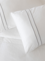 Crafted from smooth 300 thread count cotton sateen, this quality duvet set offers a soft, elegant drape and subtle sheen. Its delicate embroidered detail adds a touch of refined charm, while the crisp white hue creates a bright, airy look - perfect for a serene spring bedroom.