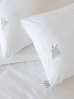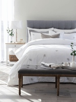 Halley White combines the simplicity of crisp cotton percale with refined embellishments. Woven from 100% cotton, this duvet cover set features understated floral embroidery that complements its fresh white tone. It offers breathable comfort, durable quality, and serene, minimalist elegance.