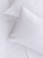 Crafted from 100% cotton, this set features a crisp white base, elevated by a classic damask pattern in luxurious cotton matelassé. This fabric blend ensures durability while maintaining a soft touch, making it an excellent choice for everyday use.