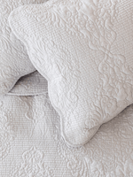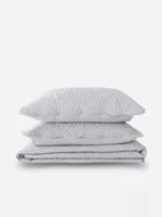 The Lia Grey Quilt Set is crafted from 100% cotton and detailed with an embossed floral pattern that brings subtle texture and timeless appeal. In a soothing neutral grey tone, it pairs beautifully with any décor while providing breathable comfort and lasting quality.