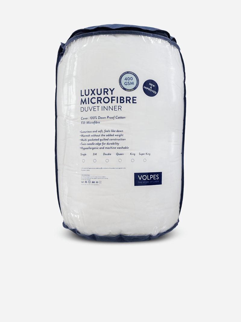 This medium loft inner is ideal for all seasons as it provides a voluminous down-like feel and comfort and has the added benefits of easy care and is machine washable. This 100% Cotton fabric blend ensures durability while maintaining a soft touch, making it an excellent choice for everyday use.