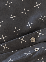 Crafted from luxurious 300TC cotton sateen, the Martin Grey Duvet Cover Set combines smooth texture with modern appeal. The design features crisp white crosses scattered on a sleek grey backdrop, creating a playful yet minimalist bedroom look. Its subtle sheen elevates the overall aesthetic, while the breathable cotton ensures a cool and restful night’s sleep.