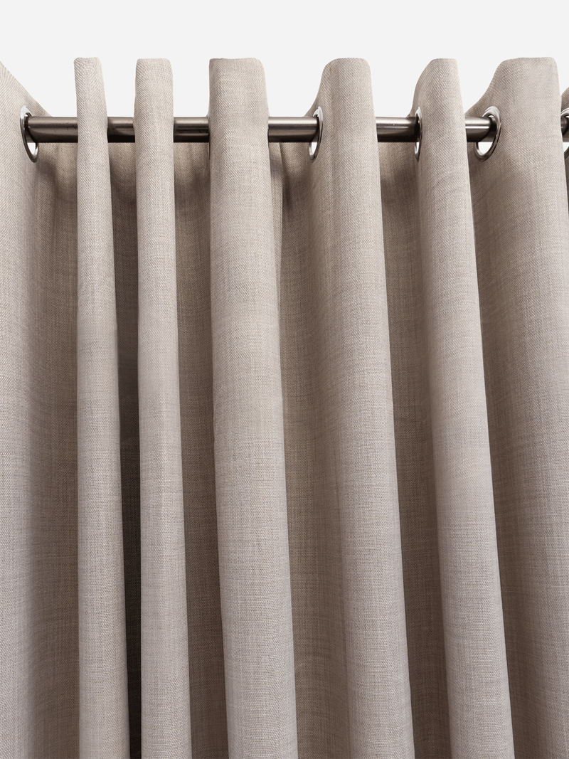 Medea Blockout Natural curtains are designed to block out most light, reduce noise, and regulates room temperature. They are available in standard and extra-long lengths, wide width. This woven texture fabric blend ensures durability while maintaining a soft touch, making it an excellent choice for everyday use.