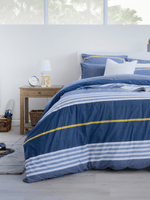 The Ted Blue Duvet Cover Set delivers effortless comfort and classic charm. Crafted from easy-care polycotton, this 144TC duvet cover set offers softness and resilience with its simple striped design. The bold blue shade brings playful energy to the bedroom, perfect for young adventurers.