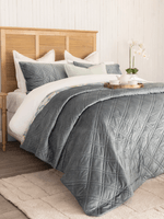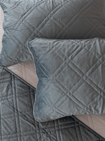 Refined and versatile, the Venice Mineral Quilt Set showcases a velvet polyester front in mineral, finished with a diamond quilted pattern and double-stitched border. The light grey microfibre reverse provides breathable warmth and comfort, making it perfect for winter layering.