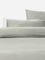 Indulge in the superior comfort of the Verona Seafoam 600 Thread Count Gold Seal Egyptian Cotton Duvet Cover Set, which features a luxurious sheen and elegant, wide pin tuck detail. Includes matching pillowcase set. This fabric blend ensures durability while maintaining a soft touch, making it an excellent choice for everyday use.
