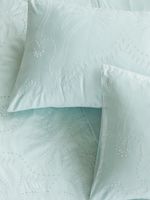 Made from luxurious 300 thread count cotton sateen, theVita Eggshell Duvet Cover Set offers a silky-luxuriously soft feel and a subtle sheen. The palm tree embroidery brings a calming, tropical vibe to your bedroom. This fabric blend ensures durability while maintaining a soft touch, making it an excellent choice for everyday use.