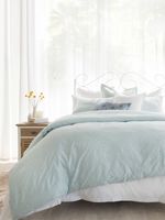 Made from luxurious 300 thread count cotton sateen, theVita Eggshell Duvet Cover Set offers a silky-luxuriously soft feel and a subtle sheen. The palm tree embroidery brings a calming, tropical vibe to your bedroom. This fabric blend ensures durability while maintaining a soft touch, making it an excellent choice for everyday use.