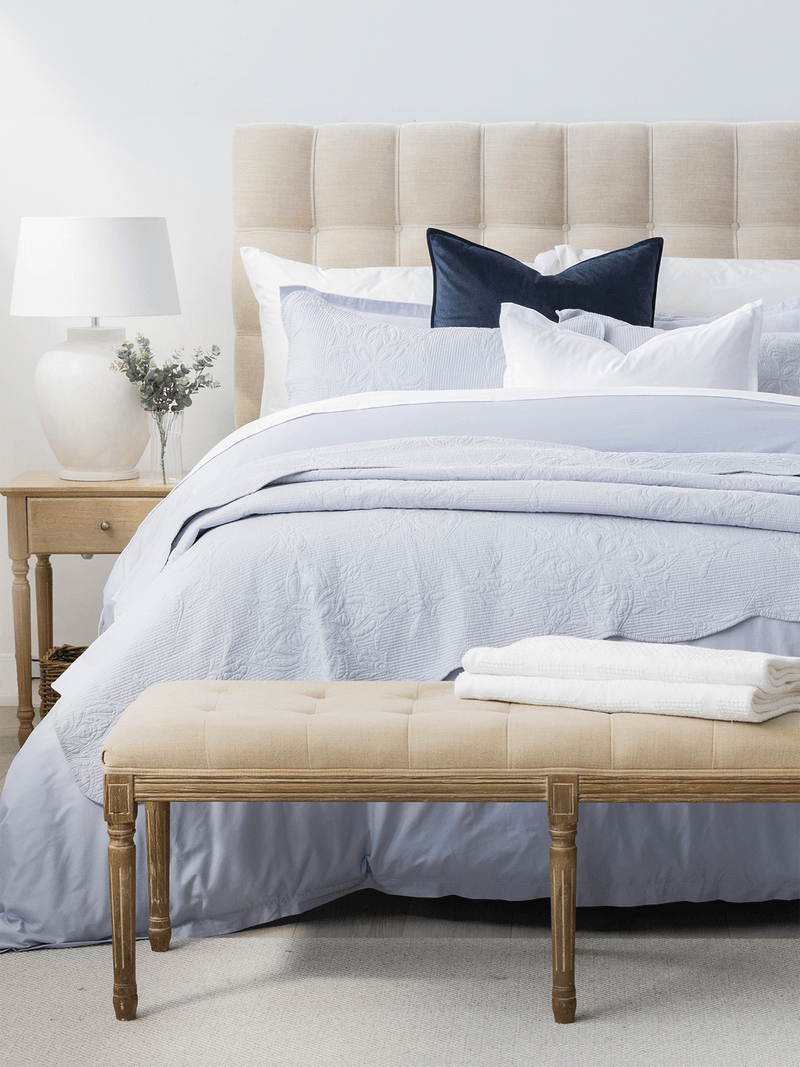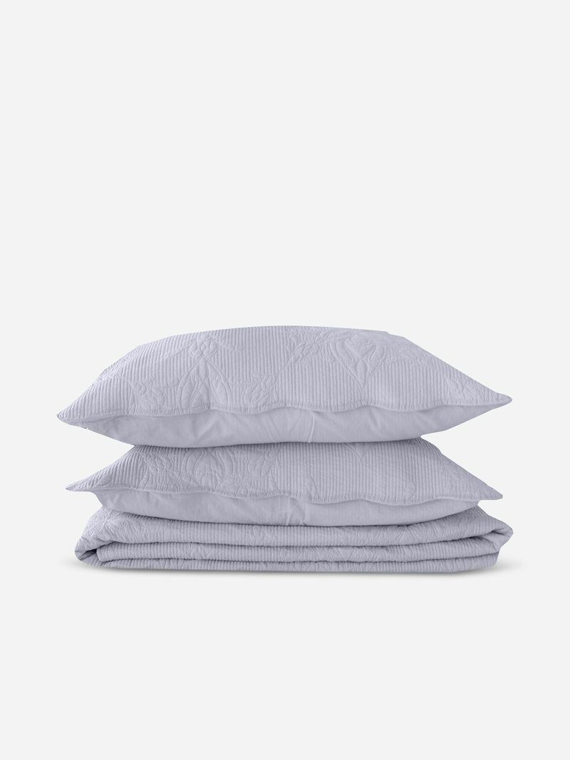 Airy and refreshing, the Zyla Sky Blue Quilt Set is crafted from 100% cotton with fine quilted embellishments in an elegant medallion design. Its soft sky-blue tone adds lightness and serenity, while the breathable cotton construction ensures comfort and quality that lasts.