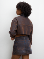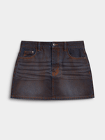Introducing our Women's Brown Denim Flock Skirt, crafted from denim for a comfortable fit. It's perfect for any casual occasion. Dress it up or down effortlessly!