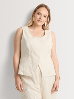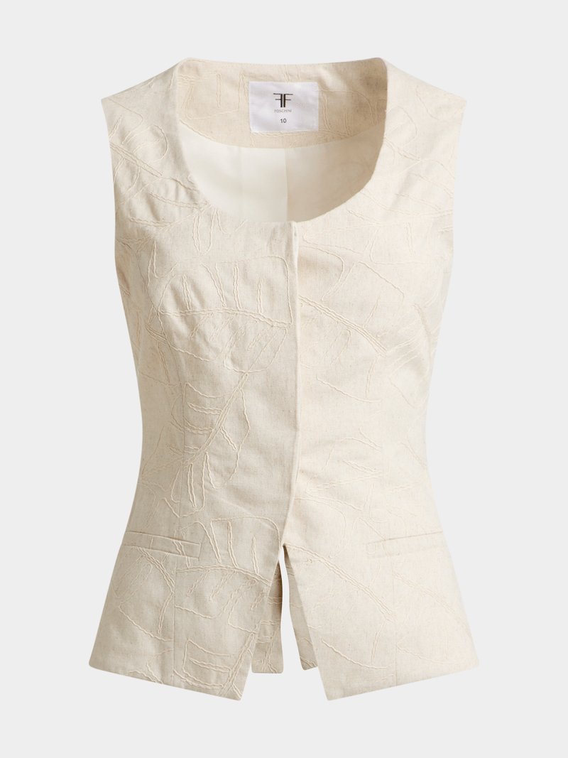 Our Linen Blend Embroidered Open Back Waistcoat has a luxe feel with embroidered detail and a sexy open back. Wear it with the matching bottoms for an on-trend co-ord set.