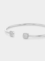 Expertly crafted in 9ct White Gold, this elegant 60mm cuff bangle features a cushion design glittering with pavé set round-cut Earth Grown Diamonds. The total Diamond weight is 0.25 carats.