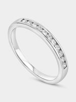 Expertly crafted in 9ct White Gold, this beautiful anniversary ring features a glittering voyage of channel set round-cut Lab Grown Diamonds. The total Diamond weight is 0.25 carats.