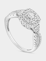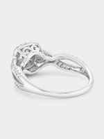 Expertly crafted in White Gold, this vintage-style ring features a cushion-shaped cluster of round-cut Lab Grown Diamonds in a halo setting and a cross over band glittering with pavé set stones. The total Diamond weight is 0.50 carats.