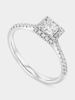 Expertly crafted in 9ct White Gold, this radiant ring features a princess-cut Lab Grown Diamond embraced by a halo of single-cut stones that sparkle on the band. The total Diamond weight is 0.53 carats.