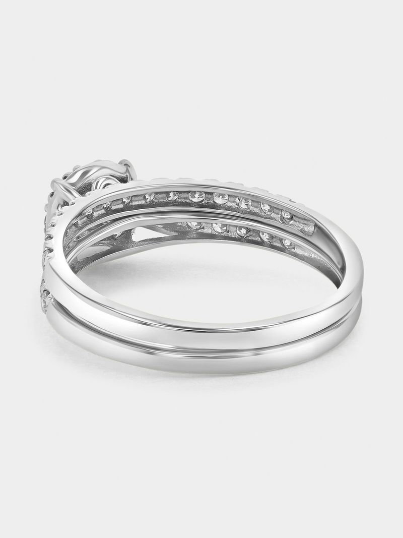 Expertly crafted in 9ct White Gold, this opulent twinset ring features a round-cut Lab Grown Diamond in a halo setting and a band glittering with pavé set stones. The total Diamond weight is 0.80 carats.