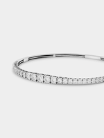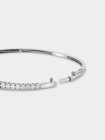 Expertly crafted in 9ct White Gold, this elegant 65mm bangle features a glittering voyage of graduated round-cut Earth Grown Diamonds in illusion settings. The total Diamond weight is 1 carat.
