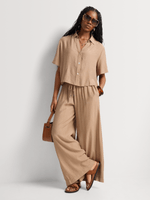 Effortlessly stylish, our Crinkle Paper Bag Co-Ord Wide Leg Pants are perfect for summer. Wear them with the matching top for an on-trend co-ord set. Complete the look with buckled slides and a monogram handbag.