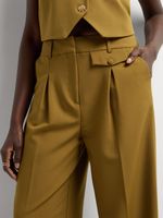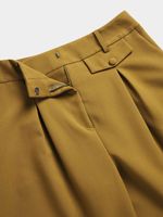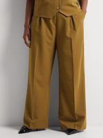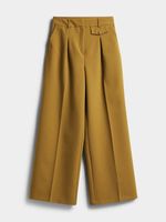 These Wide Leg Pleated Mini Pocket Pants are a sophisticated take on the utility trend. Dramatic pleats and a small pocket offer luxe utility details. Wear them with a georgette blouse and court heels to soften the look.
