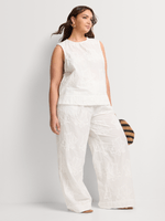 Textured and stylish, our Embroidered Wide Leg Pants feature same colour all-over embroidery for a cohesive tonal look. Wear these high-rise pants with the matching top for a summer-ready co-ord set.