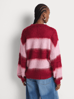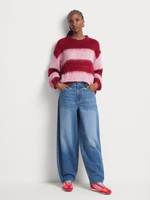 Stay cozy and stylish in our Me&B Multi Fluffy Stripe Jumper. Made from 100% acrylic, this jumper features a loose fit, long sleeves, and a round neckline. Perfect for chilly days, it's easy to pair with your favorite bottoms.