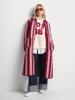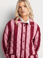 Stay warm and stylish with the Multi Burgundy/Pink Cropped Puffer from Me&B. Made of 100% polyester, this long-sleeved puffer features a trendy longline design. Perfect for any fashion-forward individual.