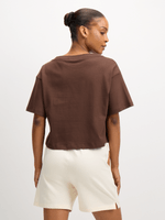 Introducing our APX Cropped Graphic Tee in a delicious Chocolate hue. Made with a comfy Cotton blend fabric. Express yourself with the fun graphic design. Enjoy a great discount and easy returns. Perfect for any casual occasion. Upgrade your wardrobe with this trendy piece.