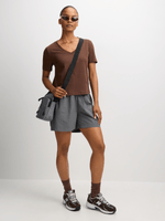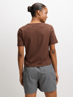 Meet the APX Essential V-neck Tee in rich Chocolate. Made from a comfy cotton blend, this tee is perfect for everyday wear. With its flattering v-neck design, it's a versatile wardrobe staple. Get yours now and upgrade your casual chic style!