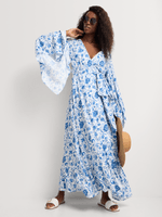 A floor-sweeping wrap silhouette designed to move with you — the Coco Wrap Dress blends open Japanese-inspired sleeves with an effortless, flattering body. Wear it cinched at the waist or open as a maxi kimono.