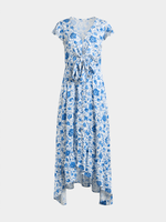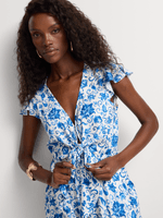 A summer-daydream of a dress. The Ella features soft cap sleeves, a gentle V neckline, a flattering tie-front detail, and a button-up skirt that finishes in a playful ruffled hem. Light, easy, and endlessly wearable — she’s made for market mornings, sunlit lunches, and barefoot wanders.