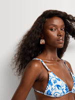 A golden-hour essential — the Havana Top features gold ring details and a flattering triangle cut with soft, removable padding. Adjustable tie-back straps ensure your perfect fit for sun-drenched days.