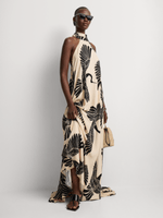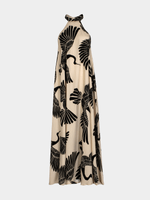 Cut in luxe fabric that drapes like a dream, our Aquarius Dress features a halter neckline and long ribbon ties for a floaty, feminine silhouette. The tented maxi cut makes this the ultimate statement in ease and elegance — made for golden hours and barefoot evenings.