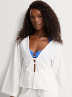 Our Quinn Shirt features delicate tie-front detailing and subtly flared sleeves for an airy, feminine feel. Wear loose with matching Quinn Shorts, or half-tucked into our Positano Pants for an undone yet elevated mood.