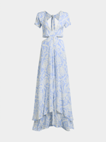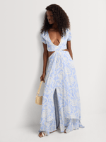 ur Calypso Dress flows effortlessly—cascading and crowned by daring cut-outs at back and sides. Capped sleeves and a long silhouette make it a radiant choice for sunlit days and golden nights. She’s the perfect wedding guest dress too.